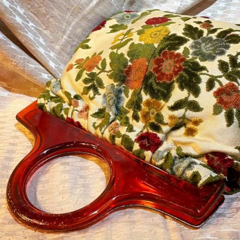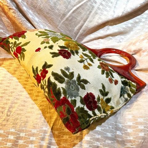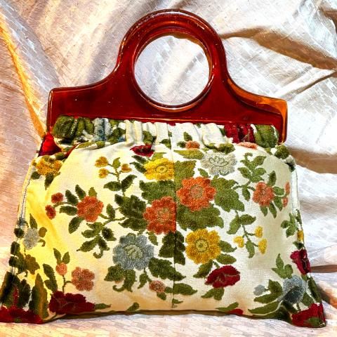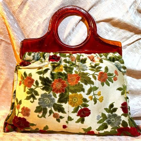 Floral Carpet Tapestry Purse with Plastic Handle
