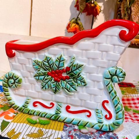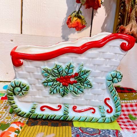 Santa's Sleigh Ceramic Flower Vase, Planter