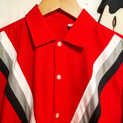 真っ赤なボディーにVラインデザインのコットン長袖シャツ*